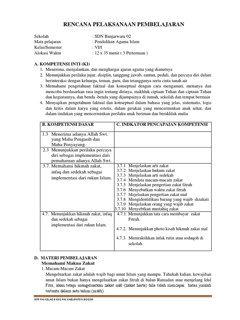 RPP PAI Kurikulum 2013 Revisi 2017 kelas 6 semseter 2. RENCANA PELAKSANAAN PEMBELAJARAN RPP SDMI. Soal tentang zakat kelas 6 sd.