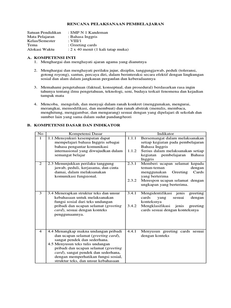 Guru Berbagi Rpp Bahasa Inggris Kelas Viii Greeting Card